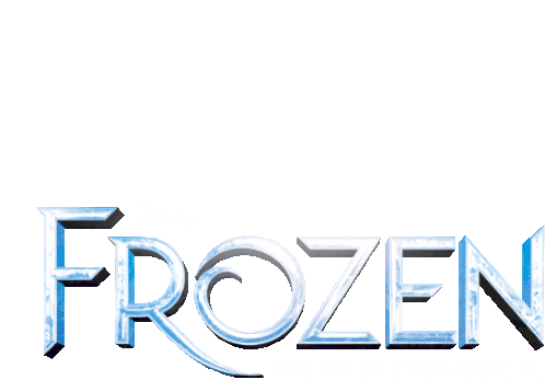 The iconic 'FROZEN' movie logo shimmers with an icy, metallic texture, representing the beloved Disney franchise.