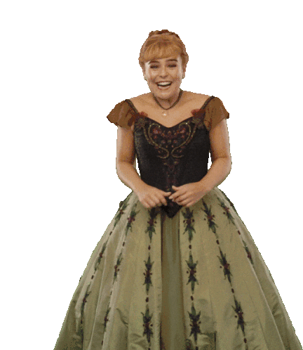 Anna from the Frozen Musical in London is thrilled and excited, clapping her hands with a joyful expression.
