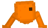 An orange, pixelated creature from Fruit Playground wiggles its body and legs in a quirky, animated motion.