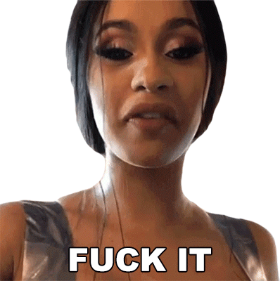 Cardi B expresses a defiant 'Fuck It' with a dismissive attitude and confident demeanor.