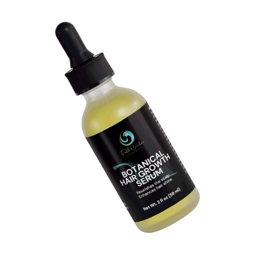 A bottle of Full Circle Health Botanical Hair Growth Serum with a dropper, designed to nourish the scalp and enhance hair shine.