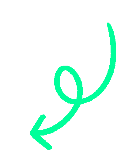 A vibrant green hand-drawn arrow animates, curving and looping before pointing downwards.