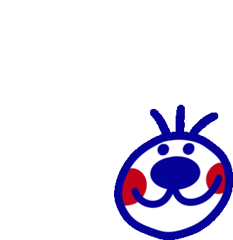 A fun cartoon character with red cheeks and spiky hair rolls its eyes upwards, expressing mild annoyance or disbelief.