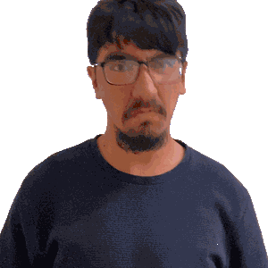 a pixelated image of a man wearing glasses and a beard
