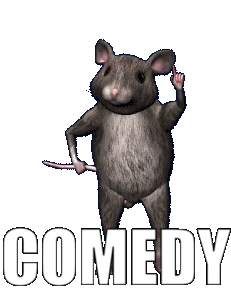 A funny animated rat pointing its finger with the word "COMEDY" below, perfect for expressing humor and funny moments.