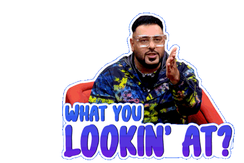Badshah asks 'What You Lookin' At?' with a direct gaze and pointing gesture, a funny meme from Case Toh Banta Hai.