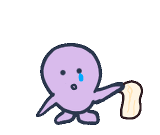 A purple character cries and wipes its tears with a cloth, then multiplies into many crying characters.