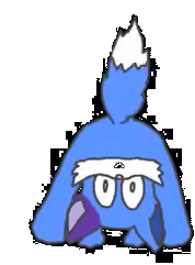 A cute blue furry fox character with a white tail tip shakes its booty in a playful dance.