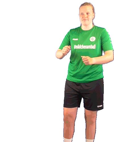 A female player from HSC 1893 catches a soccer ball, wearing a green jersey with #mädchenhandball. Shows skill and team spirit.
