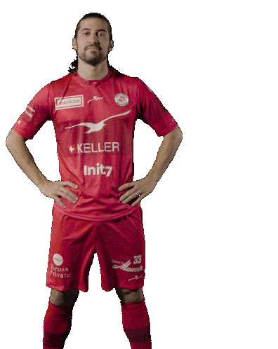 Davide Callà, a footballer in a red jersey, stands confidently and adjusts his shirt.