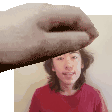 Gabe smiles as a hand playfully holds a piece of paper over his face, acting like a 'good boy' getting pet.