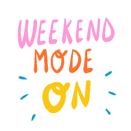 Gabi Toma Gabitoma sticker featuring the phrase 'weekend mode on' in vibrant pink, orange, and yellow lettering.