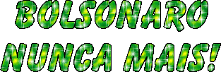 Animated sticker with 'Bolsonaro nunca mais' text, reflecting the Gabinete Doódio sentiment against Bolsonaro.