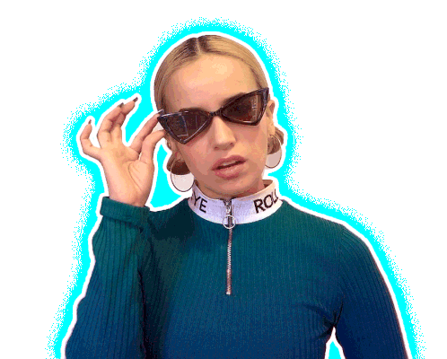 Blonde woman in sunglasses winks playfully, showing a cool and sassy attitude.