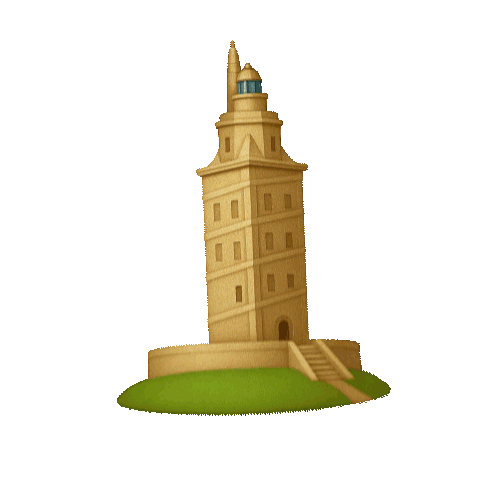 An animated sticker featuring the iconic Tower of Hercules, a historic lighthouse in A Coruña, Galicia, Spain.
