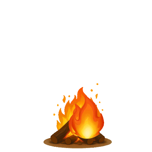 Energetic emoji-style person joyfully jumping over a San Xoan bonfire, celebrating Galician traditions.