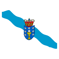 Animated sticker of the Galician flag, featuring a blue wavy stripe, a shield with a chalice, host, and crown.