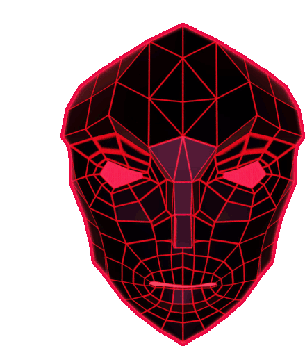 A stylized, geometric mask with glowing red lines and an angry expression, reminiscent of retro arcade games.