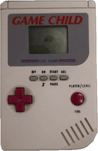 a game child lcd game has a red button on the bottom