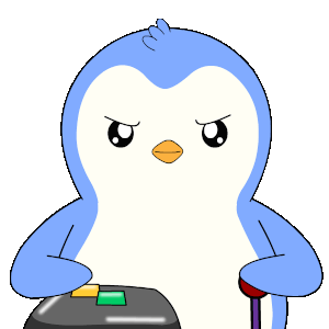 A determined Pudgy Penguin character plays a video game with a classic controller, focused on the screen.