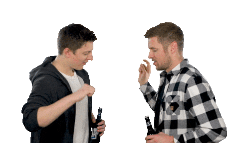 a man in a plaid shirt holds a bottle of beer
