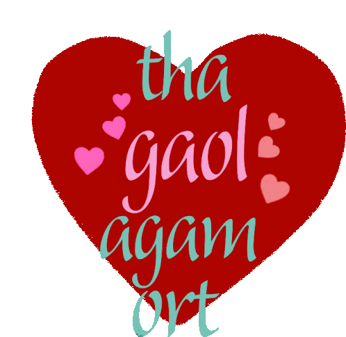A vibrant red heart sticker with the Scottish Gaelic phrase 'Tha Gaol Agam Ort' meaning 'I love you', surrounded by small pink hearts.
