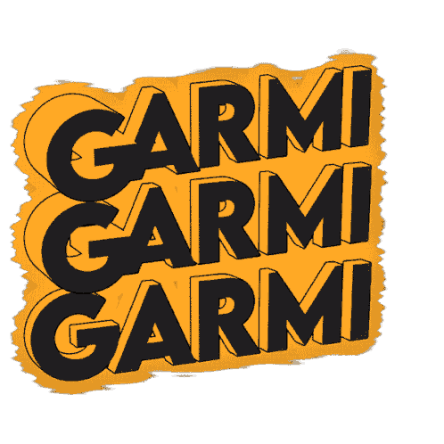 Animated sticker featuring the word 'GARMI' repeated three times in bold black 3D letters on a vibrant yellow background, associated with Jatin.