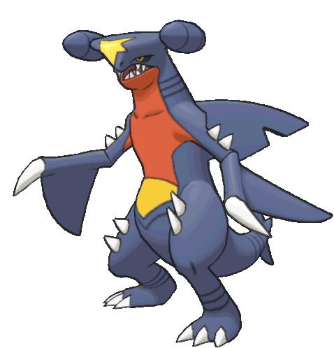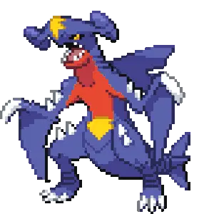Garchomp, the formidable Dragon/Ground-type Pokémon, stands ready for battle in this dynamic animated sticker.