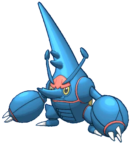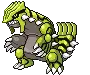 Animated pixel art sticker of Garchomp, the powerful Dragon/Ground-type Pokémon, showcasing its iconic blue and red design.