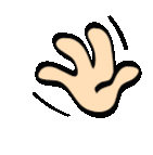 A cartoon hand with three fingers and a black outline makes a dynamic gesture, part of the Garden of Eden collection.