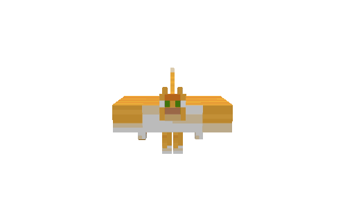 A pixelated orange cat, resembling Garfield, with green eyes and a pink nose, giving off a 'sus' or unsettling vibe.