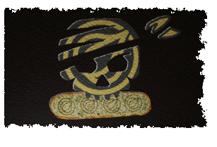 Animated sticker featuring a waving black pirate flag with a yellow and black skull design, and a piece of Garlicoin garlic bread.