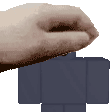 A pixelated hand from Gasa4 holds a blue, glowing dummy object, animated with subtle movement.