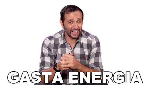 Ibere Thenorio from Manual do Mundo, looking tired and saying 'Gasta Energia Pra Caramba' (Spends a lot of energy).