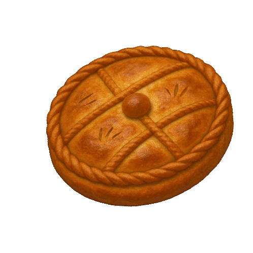 A delicious, golden-brown Galician empanada with a decorative braided crust and lattice top slowly rotates.