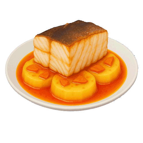 A delicious plate of Galician-style cod (bacalao a la gallega) served with potatoes in a rich red sauce, showcasing traditional Spanish gastronomy.