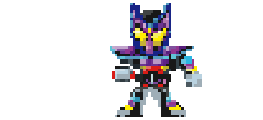 Kamen Rider Gavv in pixel art form, a robot character holding a sword, perfect for action-packed reactions.