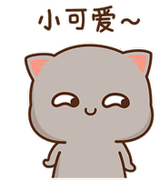 Animated sticker of a cartoon cat with a funny expression and stylized Chinese writing on its face.