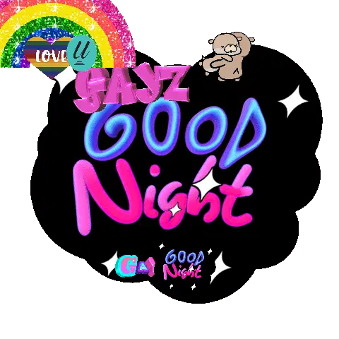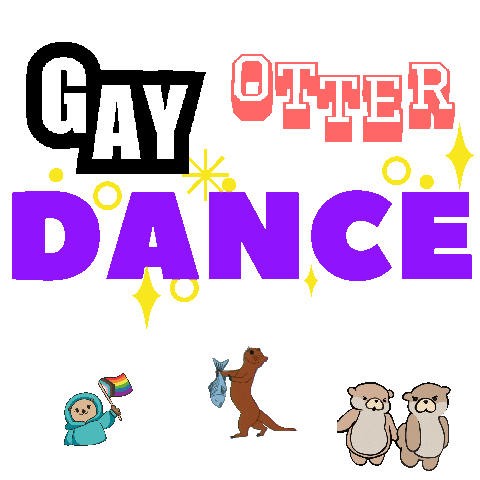 An animated sticker featuring the text 'GAY OTTER PARTY' with sparkling effects, accompanied by cute otters and a rainbow pride flag.