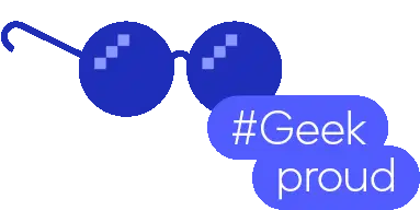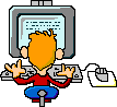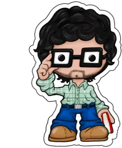 A cartoon sticker featuring a Geek PC Expert, depicted as a man diligently sitting in front of his computer with a mouse.