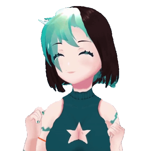 Geist Spaceghostess, the VTuber, happily dancing and jamming with a cheerful expression.