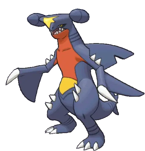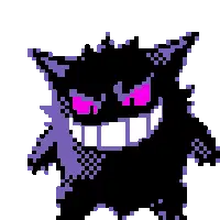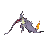 Animated pixel art sprites of Mega Pokémon including Gengar, Lucario, Charizard, Garchomp, Banette, and Mawile.