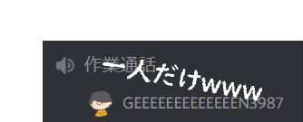 A cartoon avatar of Gen3987 with Japanese text '作業通話' and '一人だけwww' on a dark background, expressing 'ぼっち'.