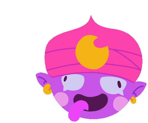 Gene from Brawl Stars with a crazy, playful expression, sticking out his tongue and wearing a pink turban.