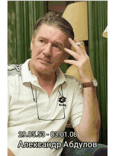 a man smoking a cigarette with the date 29.05.53 - 03.01.08