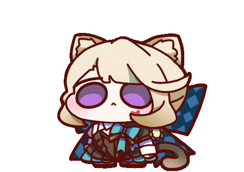 An adorable Genshin Impact Honka I chibi character with cat ears and purple eyes, sparkling with cuteness.