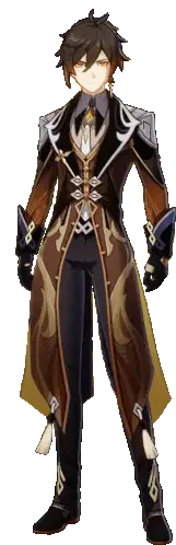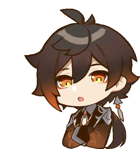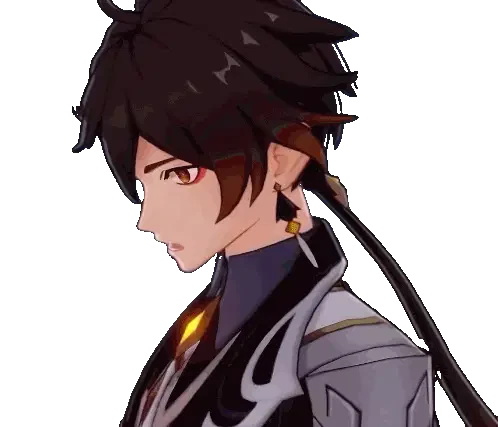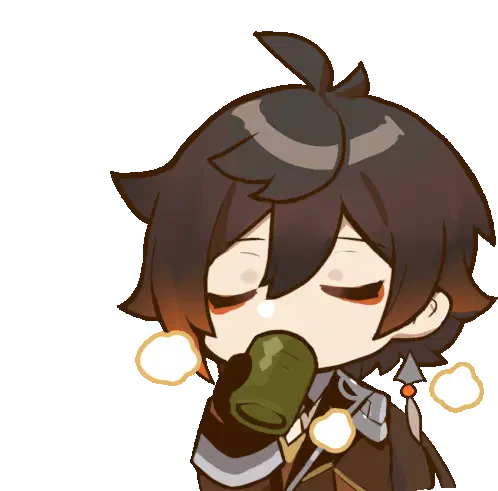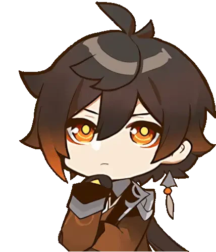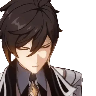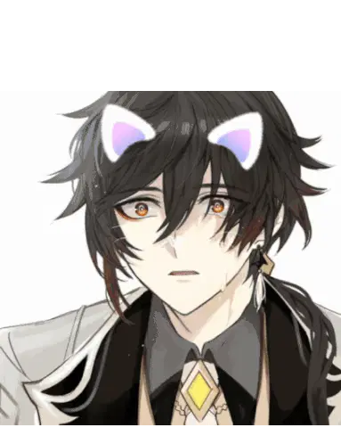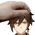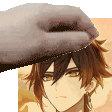 Zhongli from Genshin Impact, also known as Morax or Rex Lapis, receives an adorable head pat from a cat's paw in this sticker by miraenbee.
