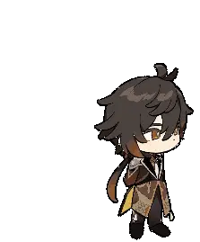 Animated sticker of Genshin Impact's Zhongli, depicted in pixel art, performing a subtle rotation. Ideal for Discord emotes.