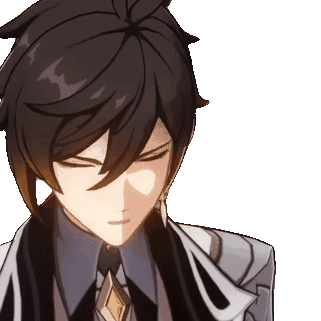 Zhongli from Genshin Impact animated sticker, showing his expression changing from skeptical to serious. Perfect for reactions.