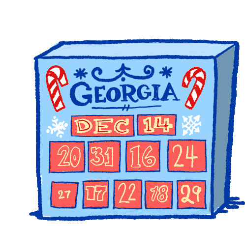 An animated advent calendar reveals the message "GEORGIA PLAN to VOTE EARLY," encouraging early voting during the holiday season.
